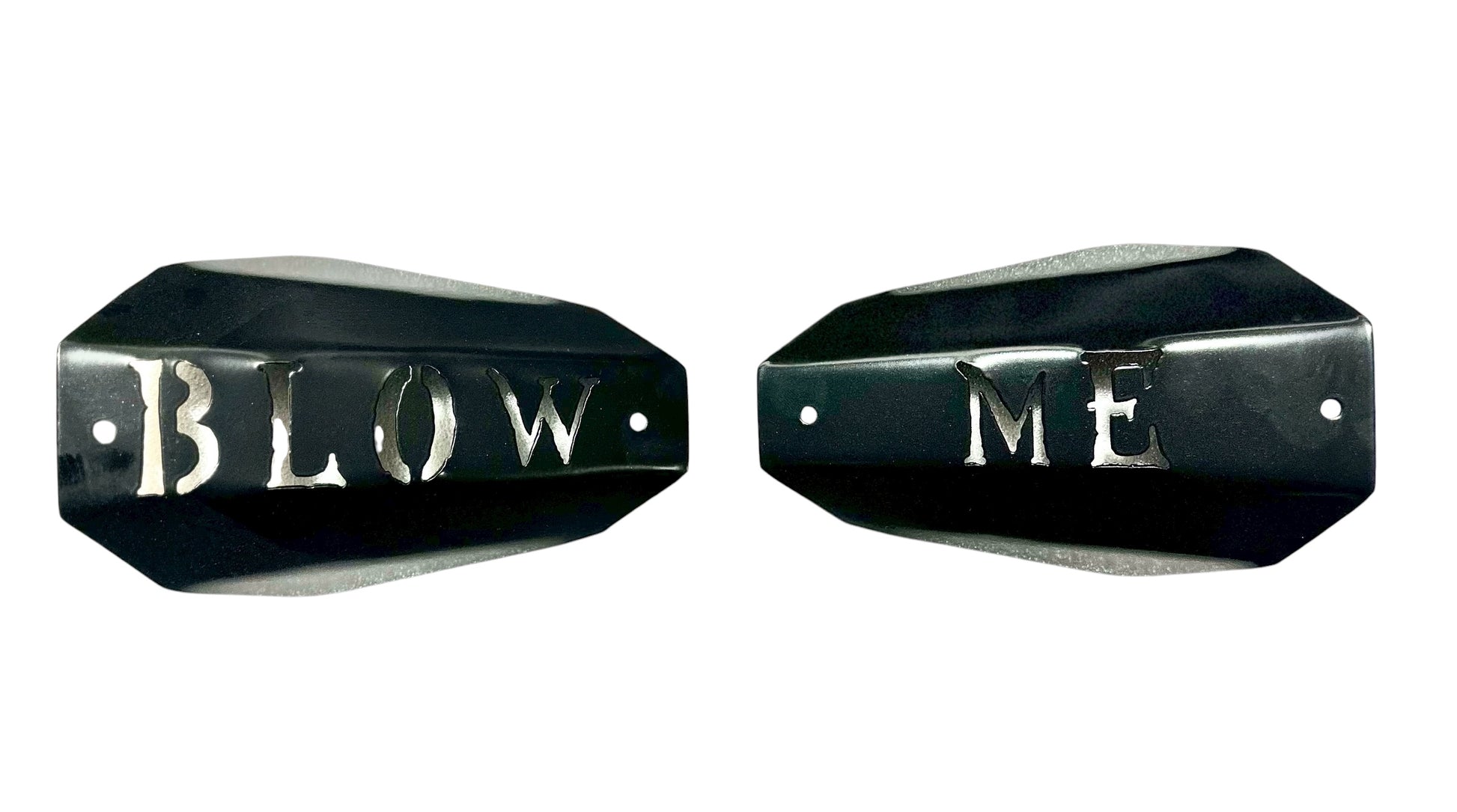 Adrenaline Armor’s "Blow Me" hand guard shells let you switch up your ride’s look anytime. Crafted from durable 18-gauge steel with a rugged powder-coated finish, or bare metal for custom painting, these outer shells snap onto your existing hand guard mounts (sold separately). Mix and match designs week to week for a bold statement that keeps your bike looking fierce. Perfect as an upgrade or paired with a full set, these shells turn heads and add personalized edge to your gear.